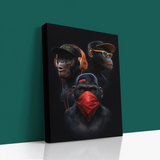 This striking urban-style canvas features three cool chimps, each embodying the timeless "See No Evil, Hear No Evil, Speak No Evil" concept—but with a modern, street-style twist. From sleek sunglasses to bold bandanas and headphones, this piece is perfect for those who love a blend of culture, symbolism, and edge.