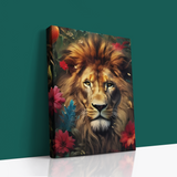 This stunning lion canvas print combines powerful symbolism with exquisite artistry, featuring a majestic lion surrounded by lush, vibrant floral elements. A perfect fusion of strength and grace, this piece is designed to inspire confidence, resilience, and leadership.